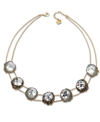 Macy's: A natural inspiration. Swarovski's innovative gold tone mixed metal statement necklace features seven clear crystals in an exclusive cut. Each one is embellished with small crystals, creating breathtaking light reflections. Approximate length: 16-1/2 inches.